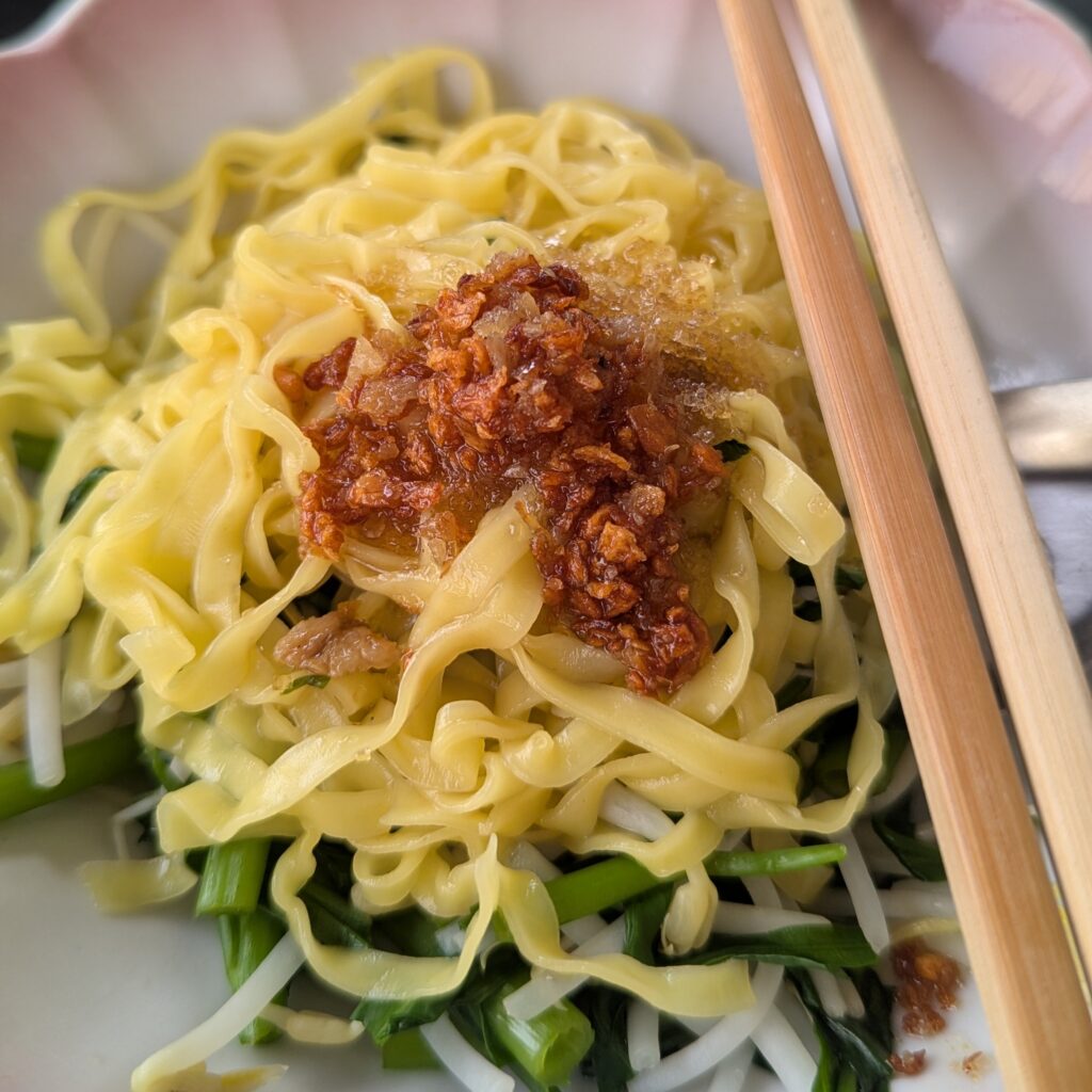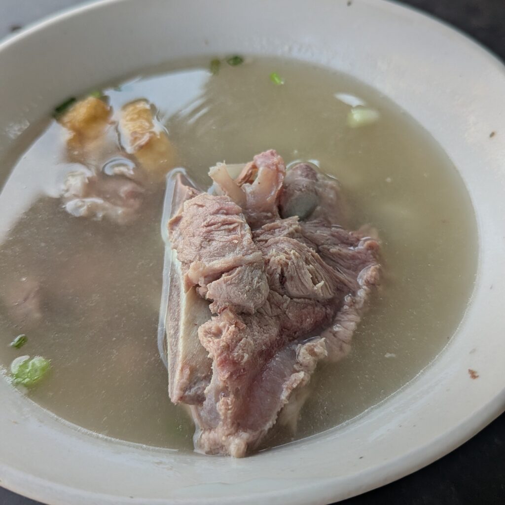 เป็นก๋วยเตี๋ยวที่เส้นหมี่เหลืองอร่อยมาก กระดูกหมูต้มมาแบบละลายในปาก ดี ในรูปคือหมี่เหลือง 1 ก้อน ถ้าใครชอบเส้นสามารถสั่ง 2 ก้อนได้จ้า